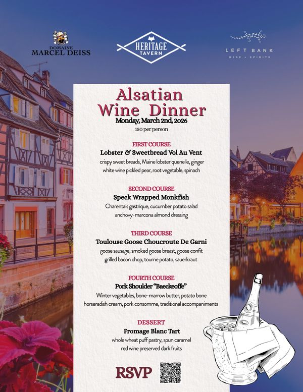 An evening of heritage, hospitality, and beautifully balanced pairings. $150 per person, only 45 tickets available. Menu reveal next week!